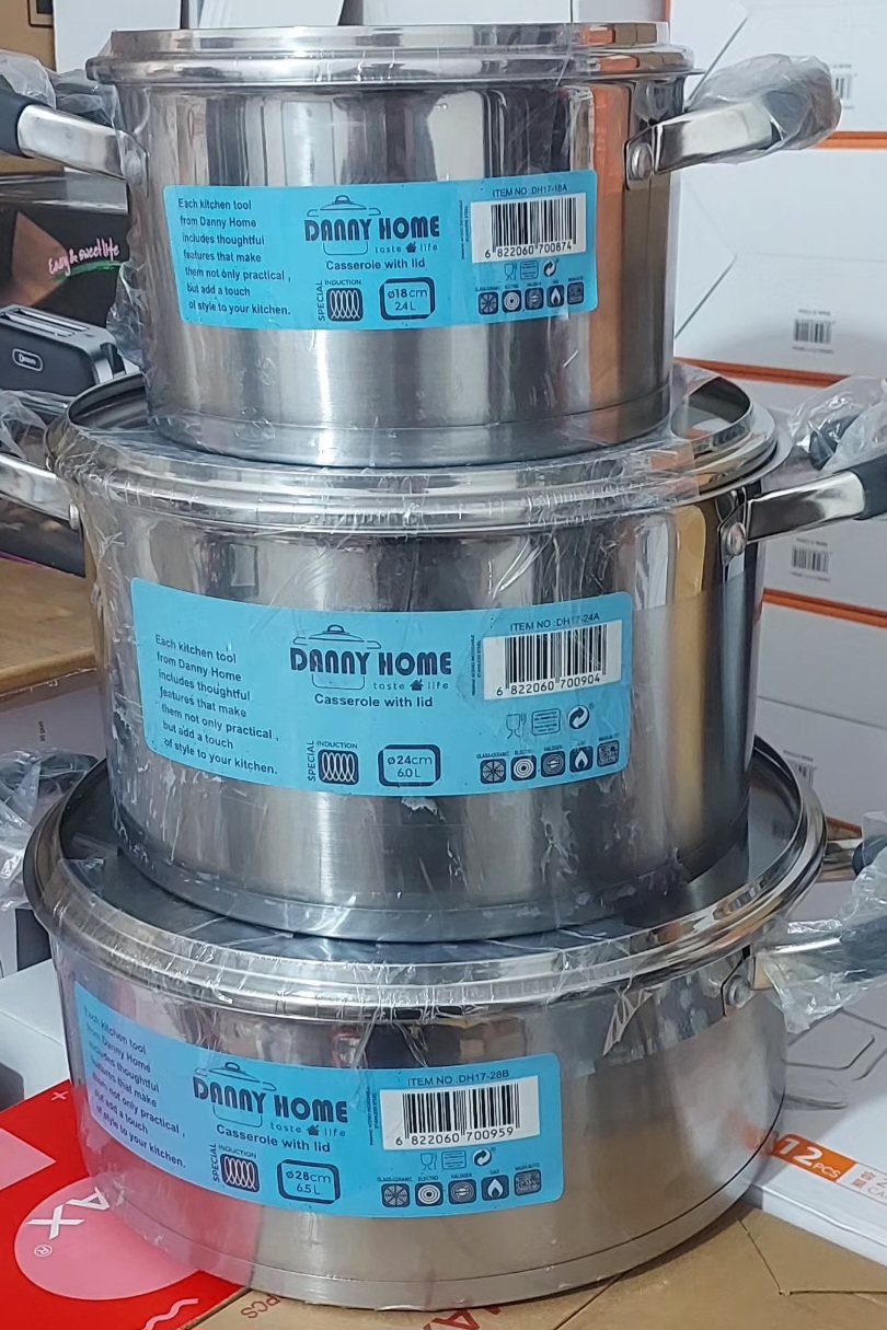 قابلمه استیل 3عددی برند دنی هوم وزن سنگین کف چودن اهنربانگیر سایز18_24_28