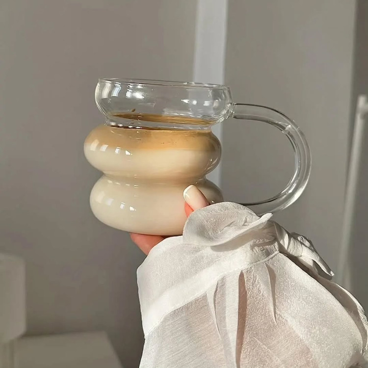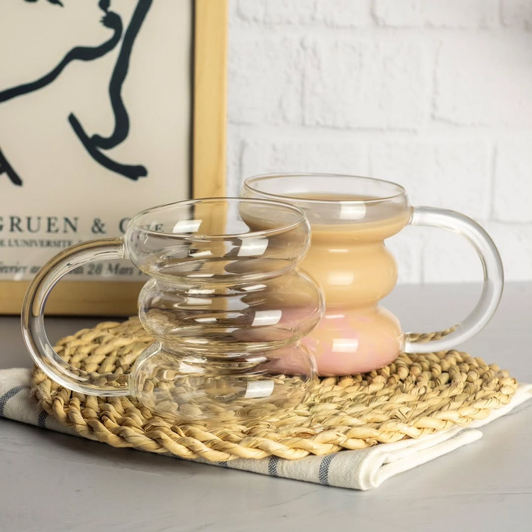 ماگ پیرکس دفرمه با طراحی سه طبقه مناسب برای استفاده خانگی و دکوری.