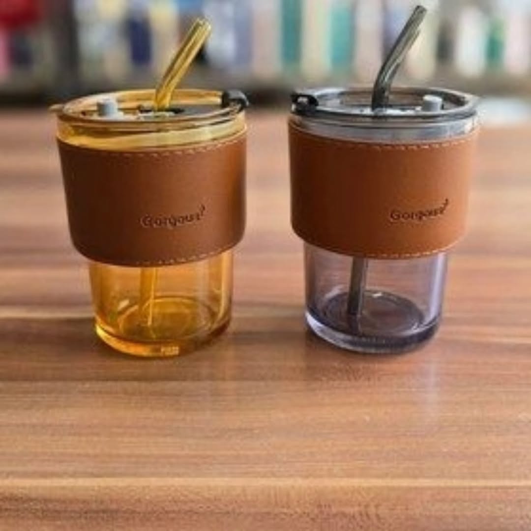 ماگ شیشه ای دور چرم نی دار