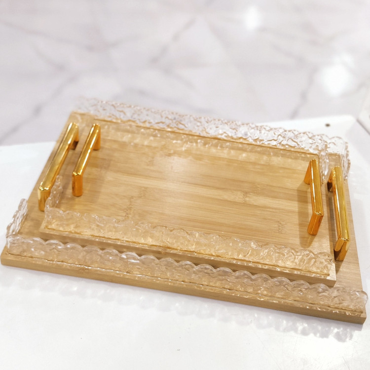 سینی های آکرولیک نشکن و چوب بامبو کاملا زد آب و خیلی با کیفیت هر سری دو تا و در دو سایز مختلف