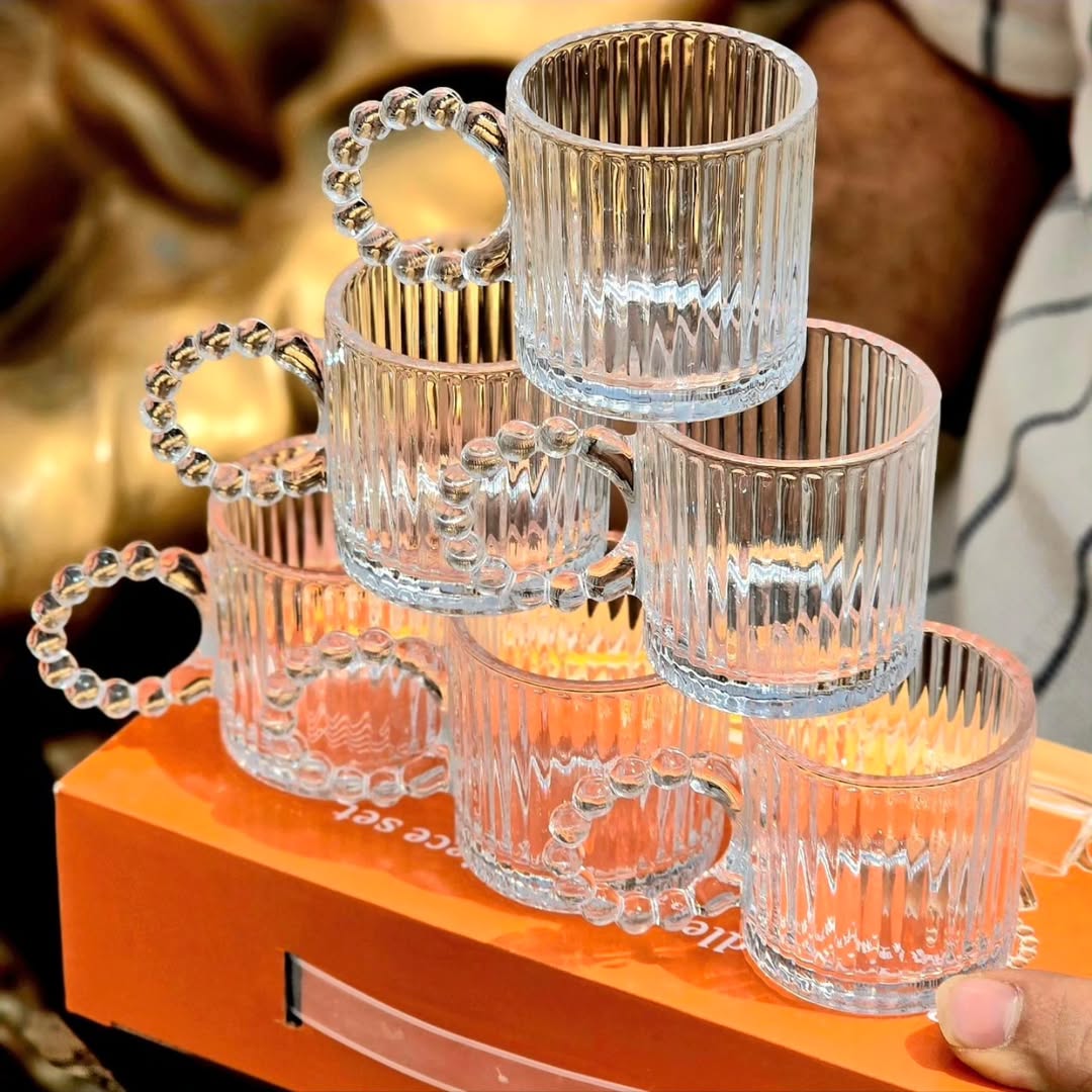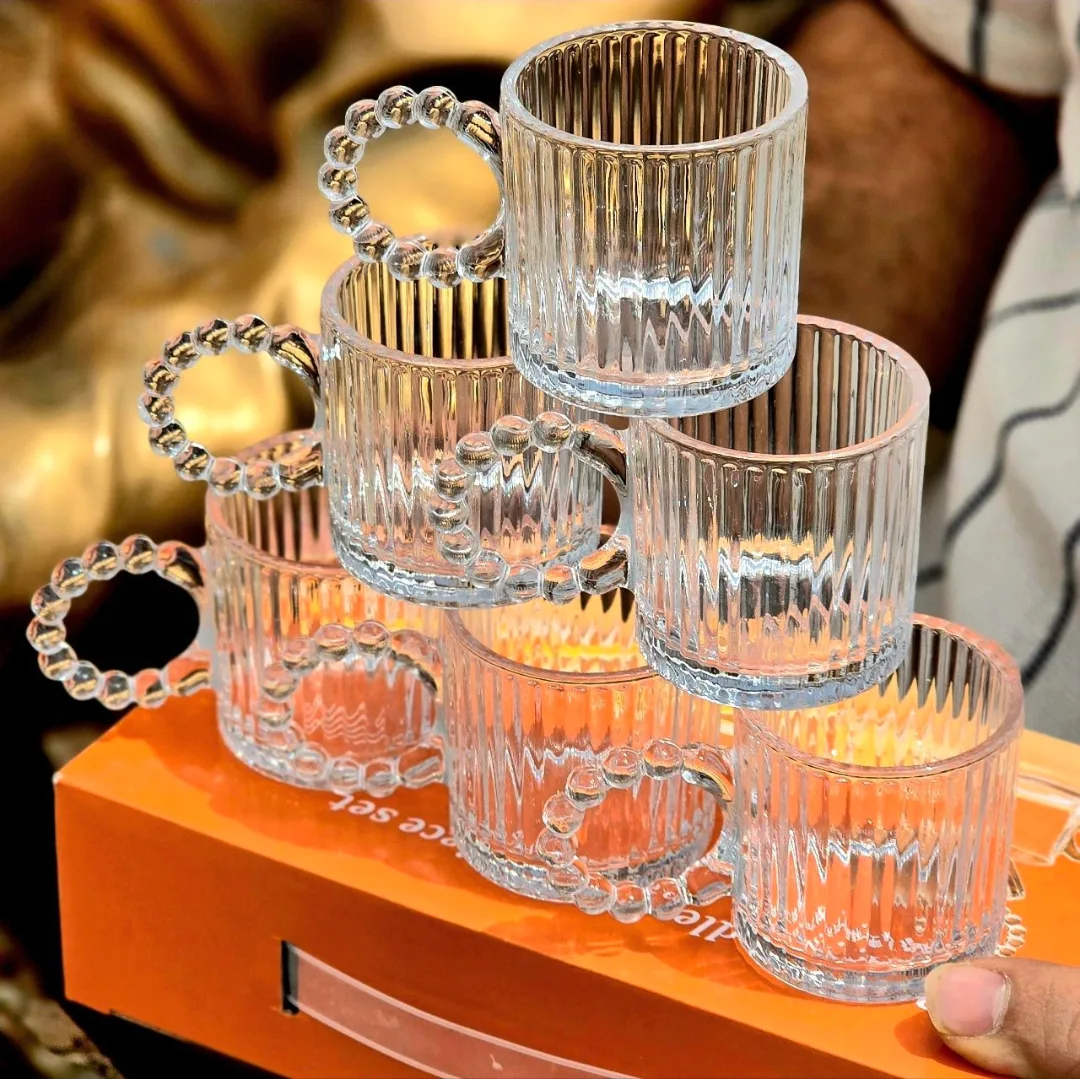 شات قهوه ۶عددی شیار دار دسته مرواریدیناموجود