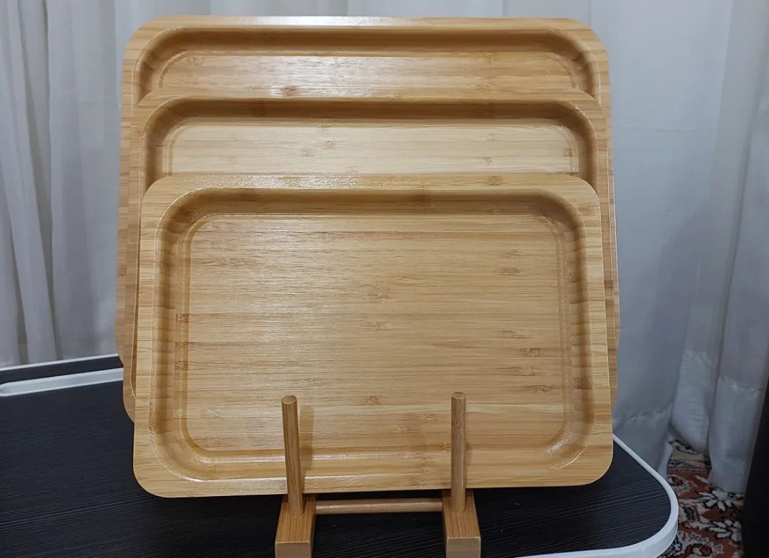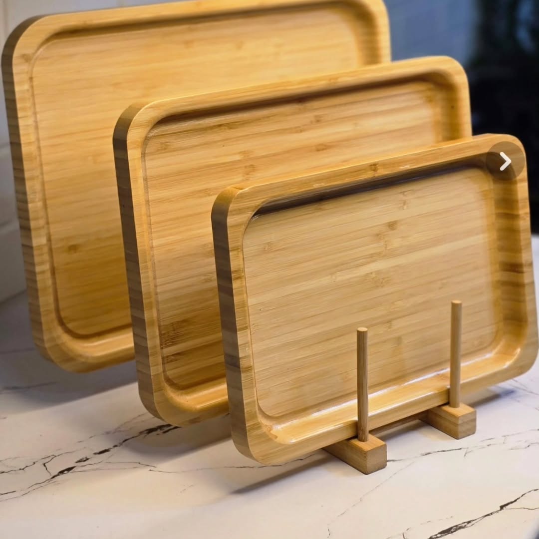 ست سینی و تخته سرو مستطیل تمام بامبوناموجود