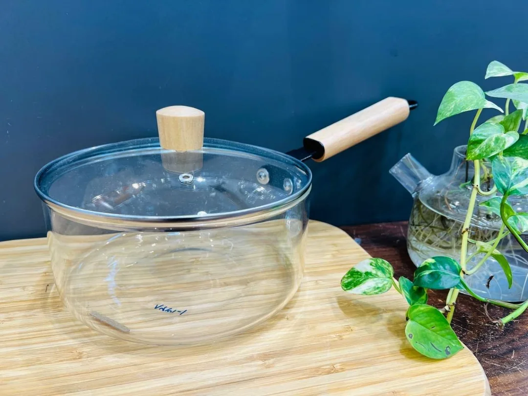 قابلمه پیرکس وارداتی شعله مستقیم با دسته بامبوناموجود