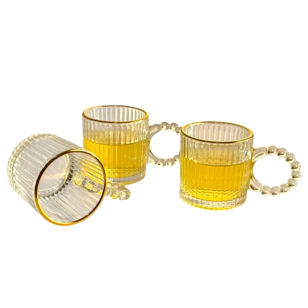 شات قهوه ۶عددی وارداتی شیاردار لب طلا دسته مرواریدیناموجود