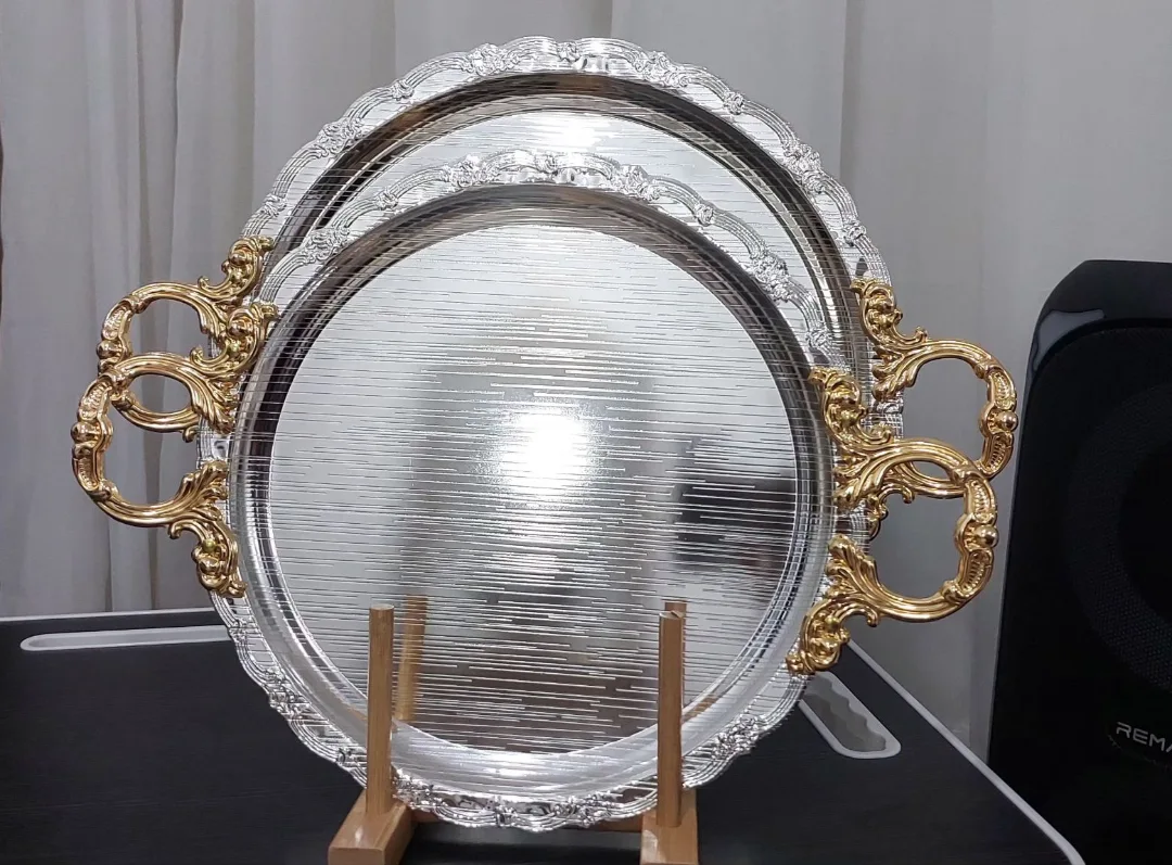 ست سینی و تخته سرو مستطیل وارداتی بامبو با ضخامت بالا دسته دار طلایی